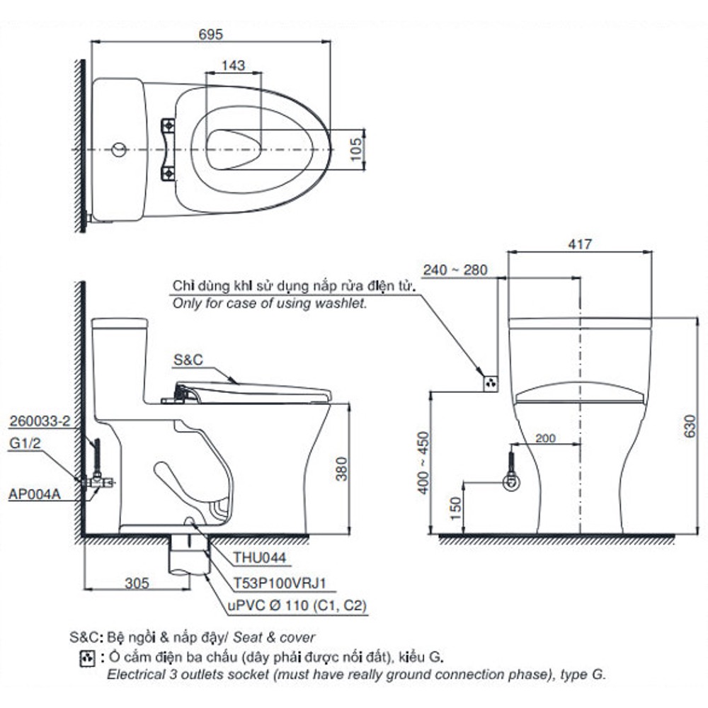 Đánh giá Bàn cầu 1 khối nắp điện tử TOTO MS855CDW17