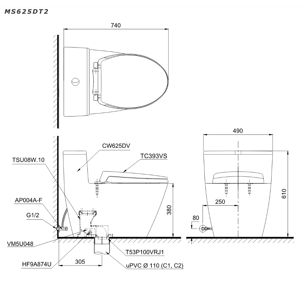 Bàn cầu 1 khối MS625DT2 cùng với nắp đóng êm TC393VS thực sự là một biểu tượng của sự tinh tế và đẳng cấp trong không gian phòng tắm của bạn. Thiết kế tinh tế nhưng vẫn giữ được bề thế và quyền uy, MS625DT2 mang lại một vẻ đẹp độc đáo và sang trọng mà không phải bất kỳ bàn cầu nào cũng có được.
