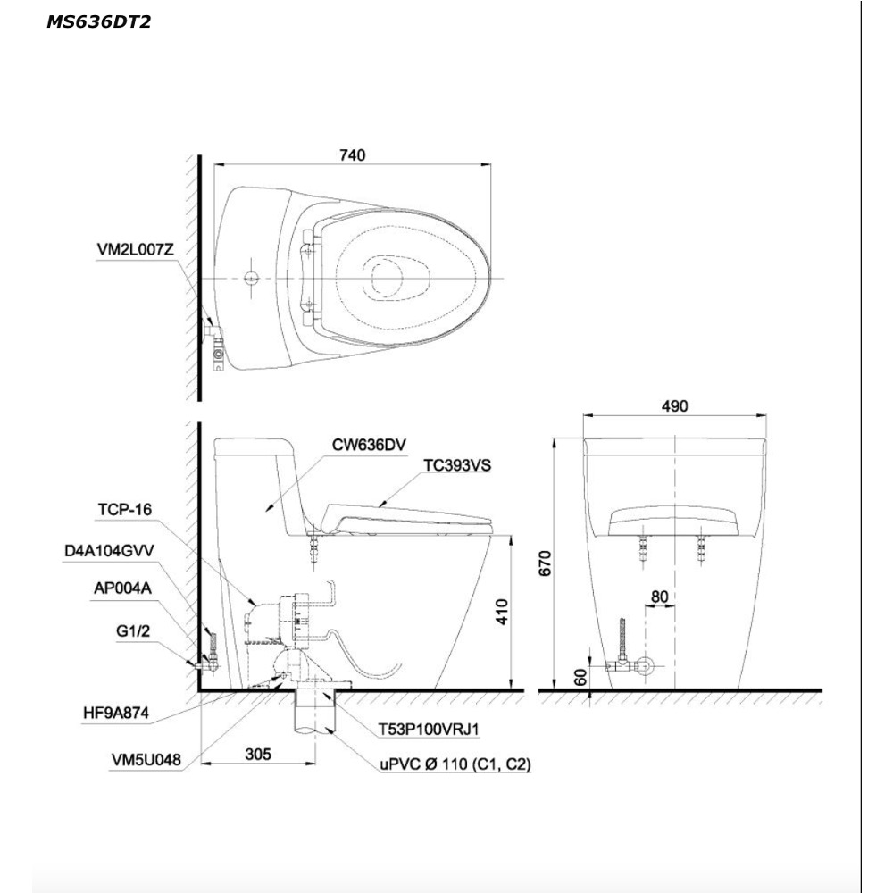 • MS636DT2 được thiết kế với bề mặt nước rộng, không như một số loại bồn cầu thông thường, nên giúp ngăn mùi rất hiệu quả.