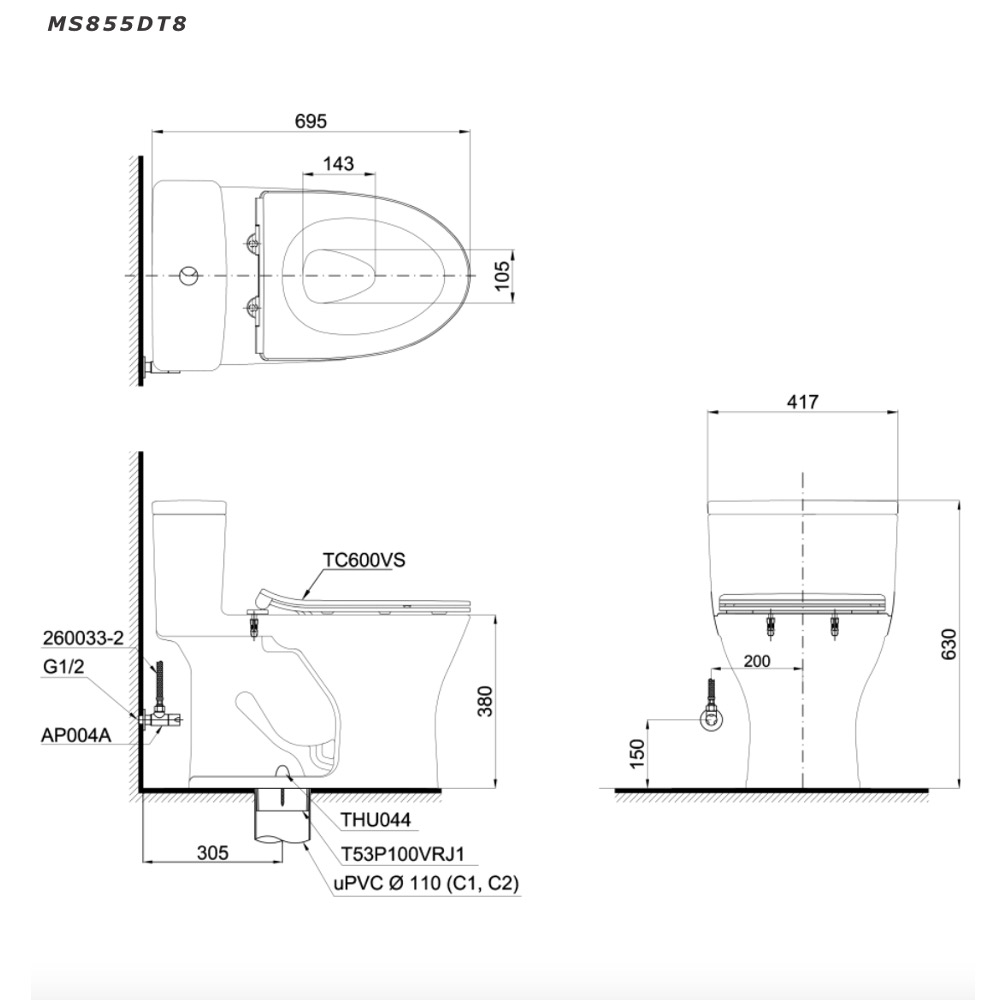- Nắp đóng êm TC600VS với thiết kế mỏng hiện đại, không chỉ có tính ứng dụng cao mà còn tăng tính thẩm mỹ cho phòng vệ sinh.