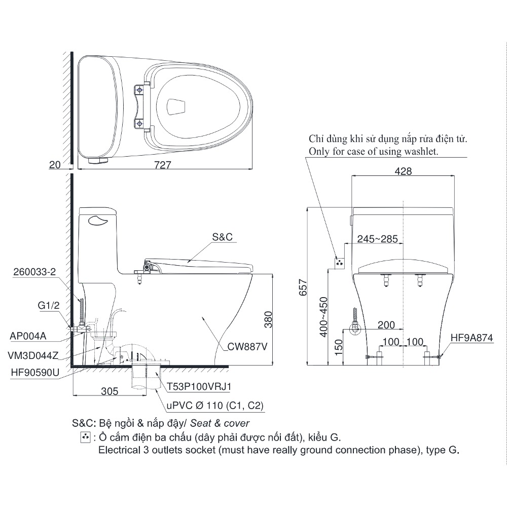 Đánh giá Bàn cầu 1 khối nắp rửa cơ TOTO MS887RE2