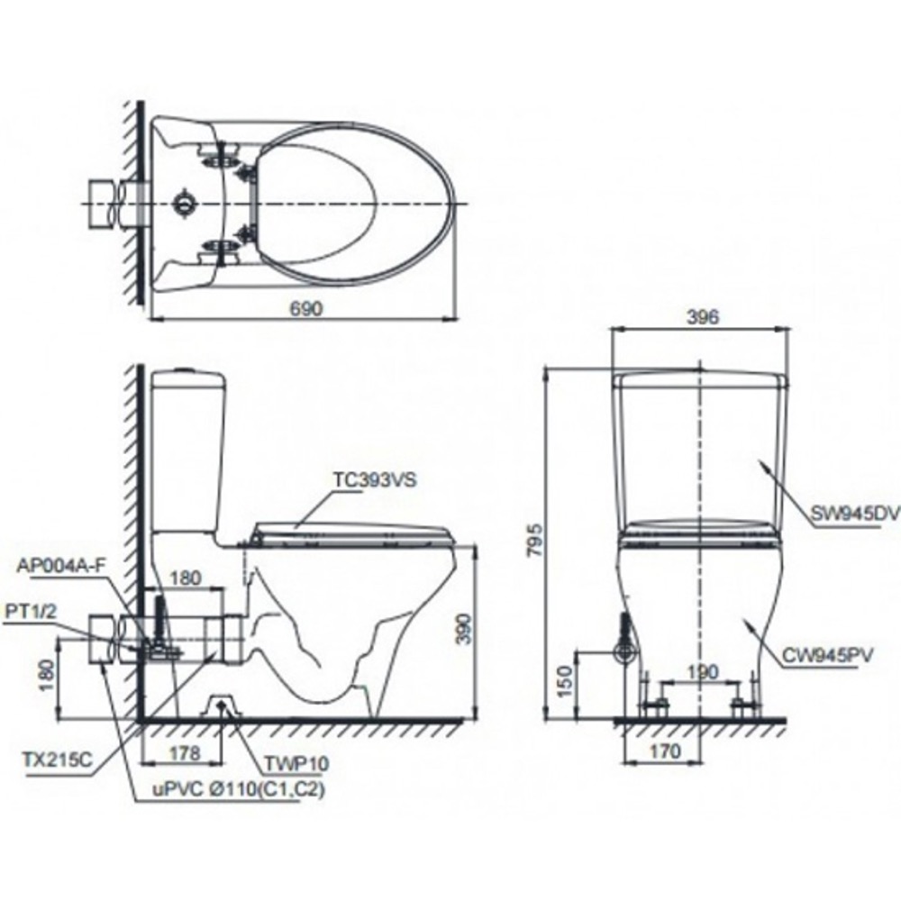 Bàn cầu 2 khối CS945PDW16 là sản phẩm chất lượng cao với thiết kế hiện đại và tiện ích. Khi kết hợp với nắp rửa WASHLET dòng C2,sẽ mang đến trải nghiệm tiện lợi và thoải mái tối đa trong việc sử dụng vệ sinh cá nhân. Nắp rửa WASHLET dòng C2 đi kèm với tính năng sấy khô, khử mùi và sưởi ấm bệ ngồi, tạo cảm giác ấm áp và sạch sẽ sau mỗi lần sử dụng. Đồng thời, hệ thống vệ sinh tự động và chất liệu chống khuẩn giúp đảm bảo vệ sinh và an toàn cho người dùng.