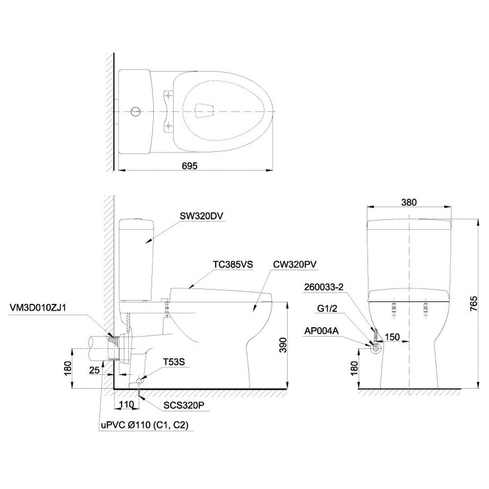 Categories: Bàn cầu, Bàn cầu 2 khối, Bàn cầu 2 khối nắp rửa cơ, Phòng Tắm