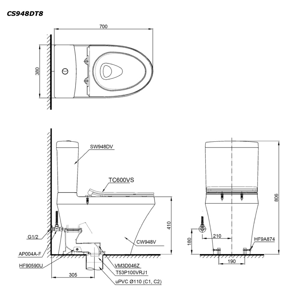 • Mẫu bồn cầu CS948 là mẫu bồn cầu cải tiến hơn so với mẫu CS945 nhờ tích hợp tính năng xả xoay 360 độ Tornado.