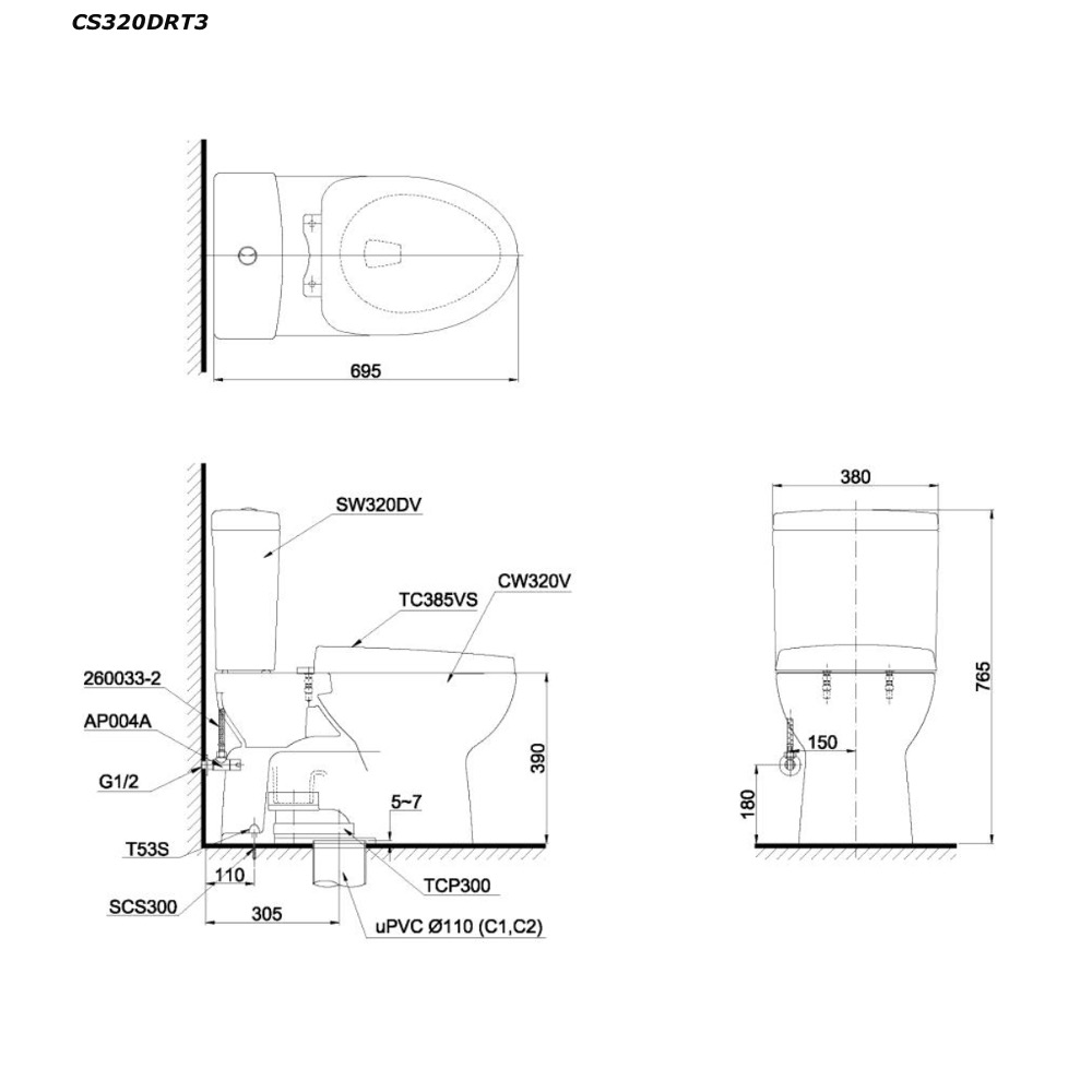 • Bàn cầu 2 khối TOTO CS320DRT10 có thiết kế sang trọng, hiện đại, kiểu dáng gọn gàng, dễ vệ sinh