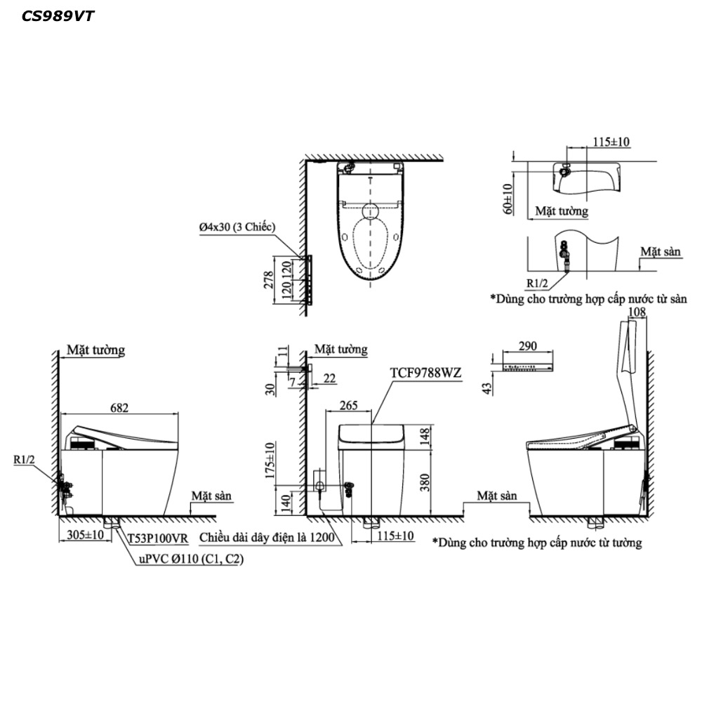 Mô tả sản phẩm Bàn cầu thông minh NEOREST AH TOTO CS989VT TCF9788WZ T53P100VR