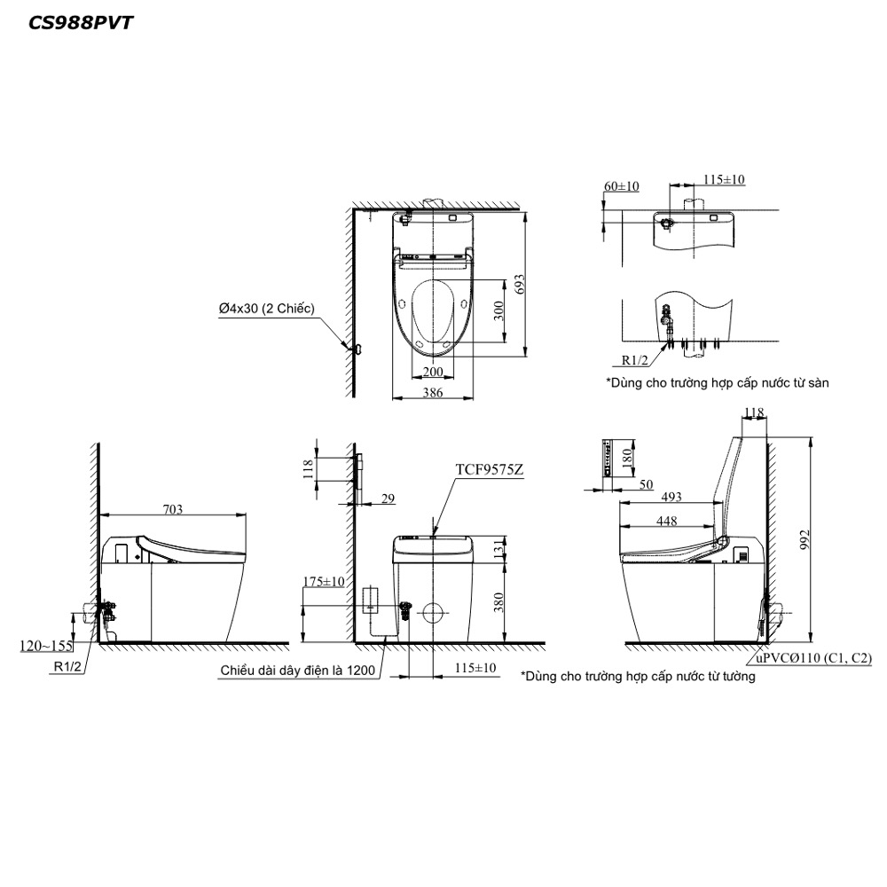 • Nhiều chức năng: sưởi ấm nắp ngồi, khử mùi, vòi rửa đa chức năng, sấy khô, xả tự động