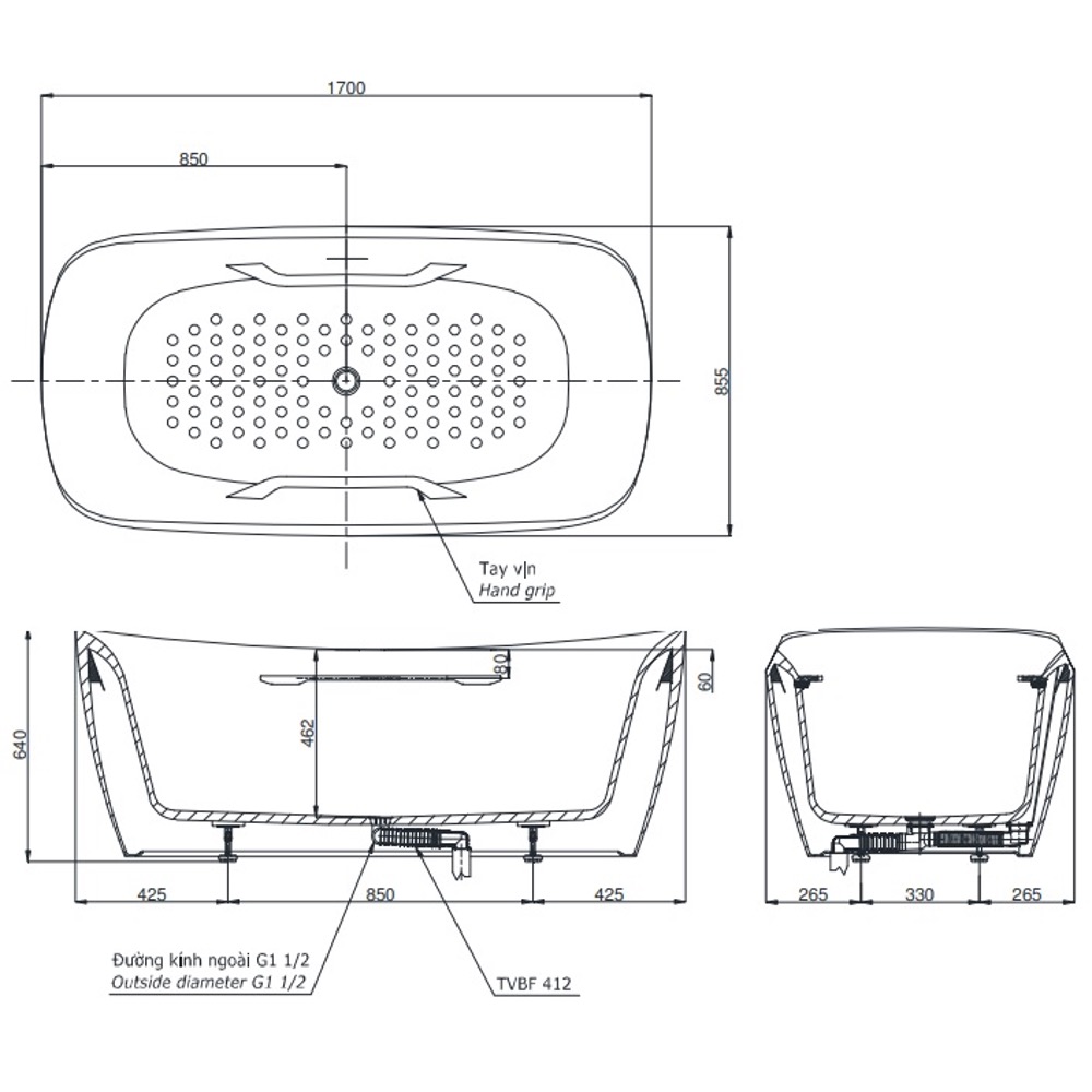 • Bề mặt bồn tắm chống trơn trượt, đem lại sự an toàn cho mọi thành viên trong gia đình từ già đến trẻ.