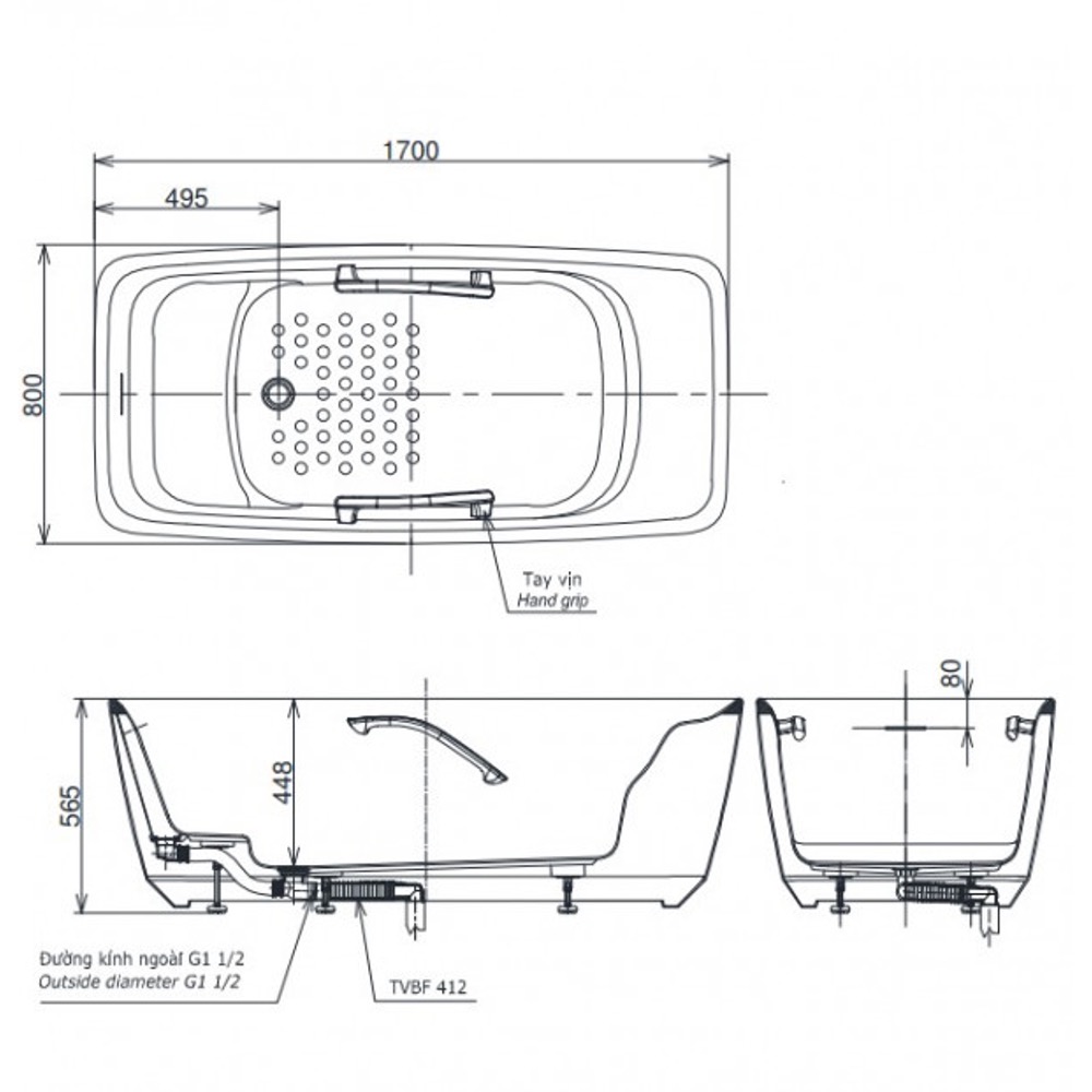 • Bề mặt bồn chống trơn trượt giúp hạn chế tối đa các nguy cơ xảy ra tai nạn trong phòng tắm, đảm bảo tối đa an toàn cho người dùng.
