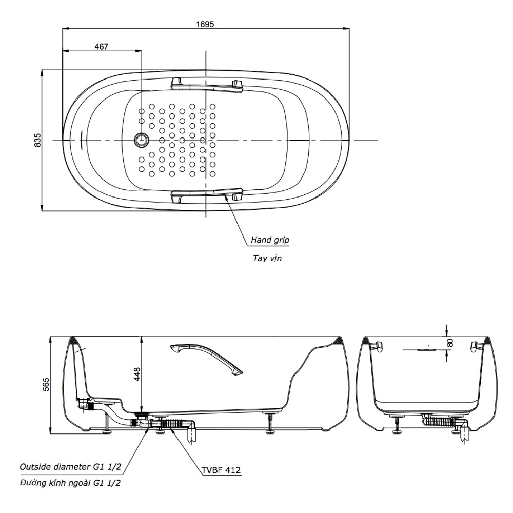 Đánh giá Bồn tắm đặt sàn GALALATO 1700mm TOTO PJY1744WHPWEN#GW