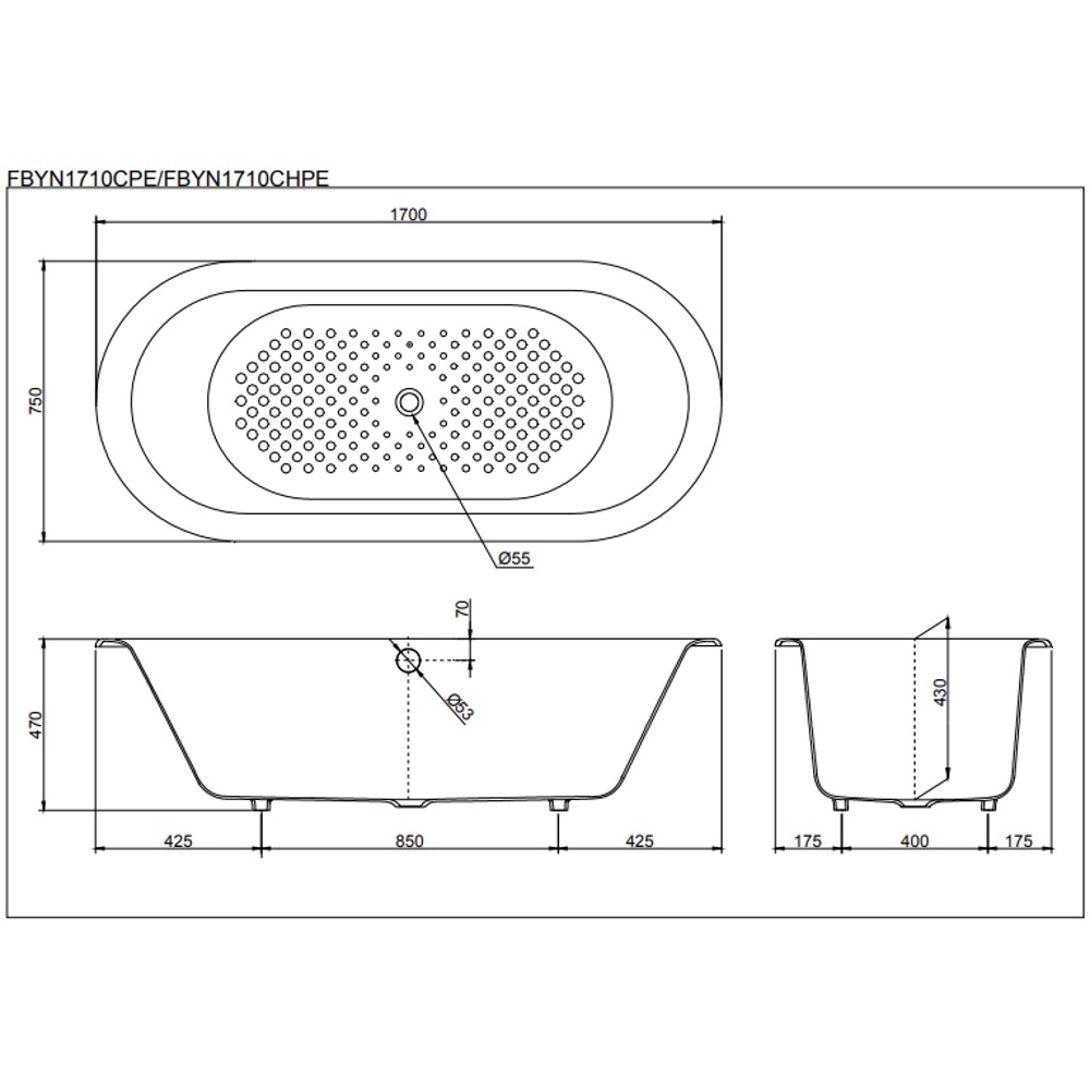 Mô tả sản phẩm Bồn tắm gang tráng men 1700mm TOTO FBYN1710CPE#W