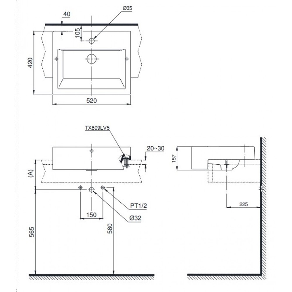 Mô tả sản phẩm Chậu lavabo bán âm bàn TOTO LT647CS