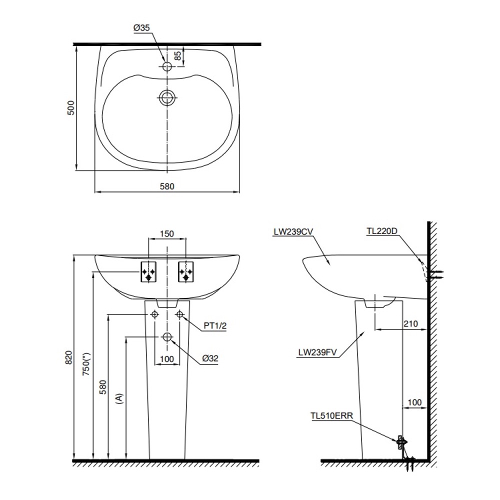 Mô tả sản phẩm Chậu lavabo chân dài TOTO LPT239CR