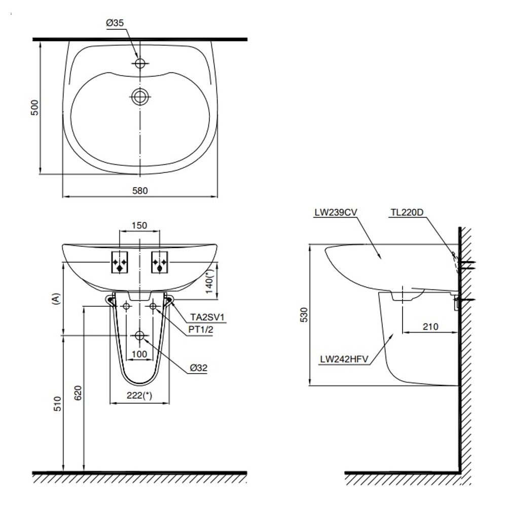 Mô tả sản phẩm Chậu lavabo chân lửng TOTO LHT239CR