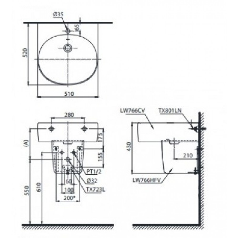 Mô tả sản phẩm Chậu lavabo chân lửng TOTO LHT766CR