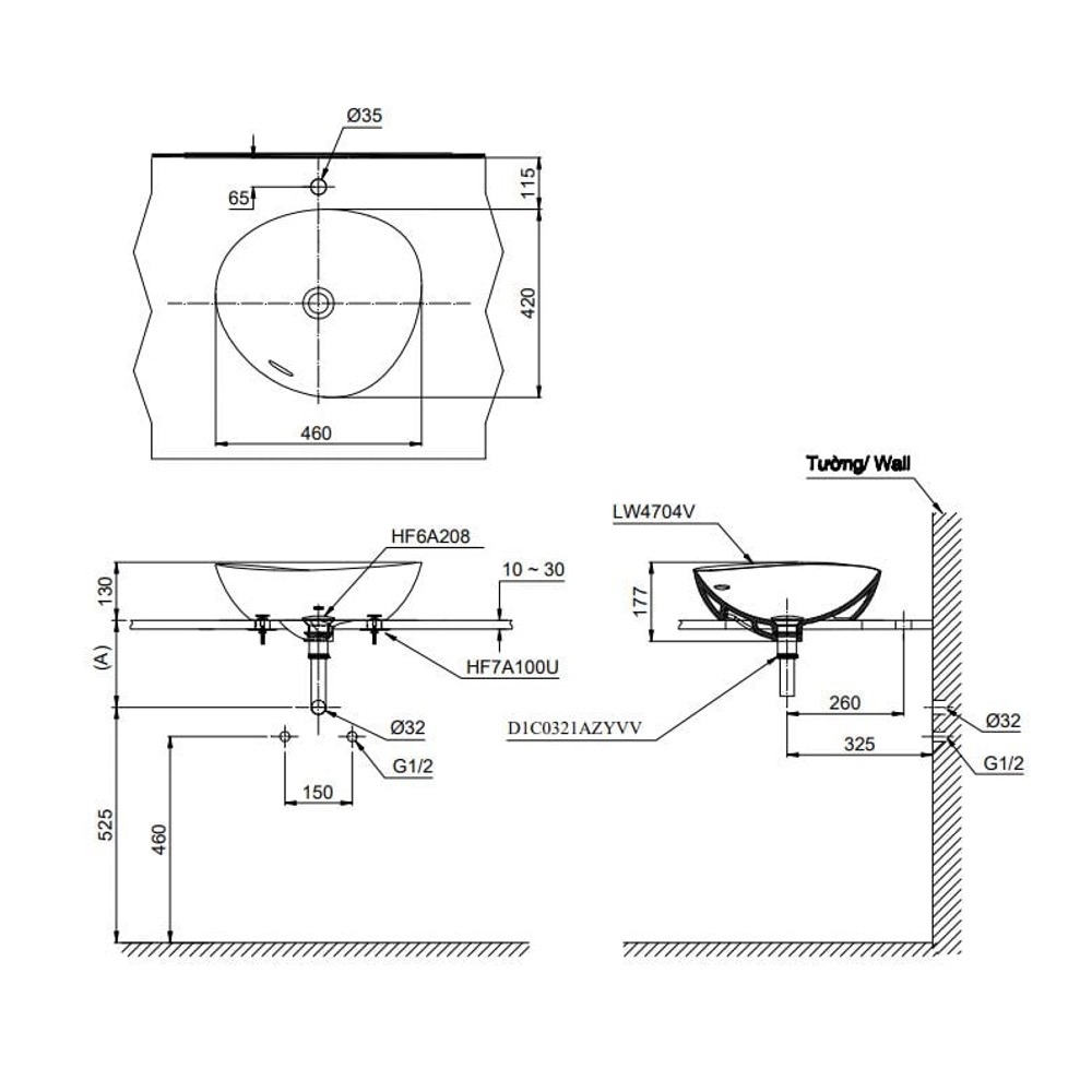 Mô tả sản phẩm Chậu lavabo đặt bàn TOTO LT4704G19