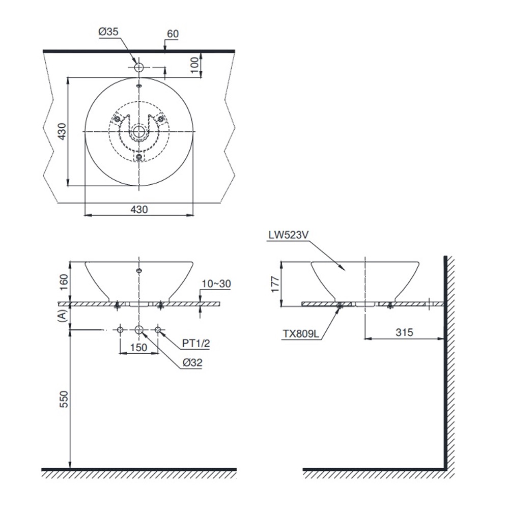 Mô tả sản phẩm Chậu lavabo đặt bàn TOTO LT523S
