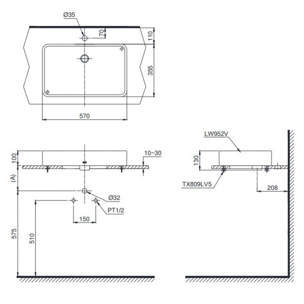 Mô tả sản phẩm Chậu lavabo đặt bàn TOTO LT952