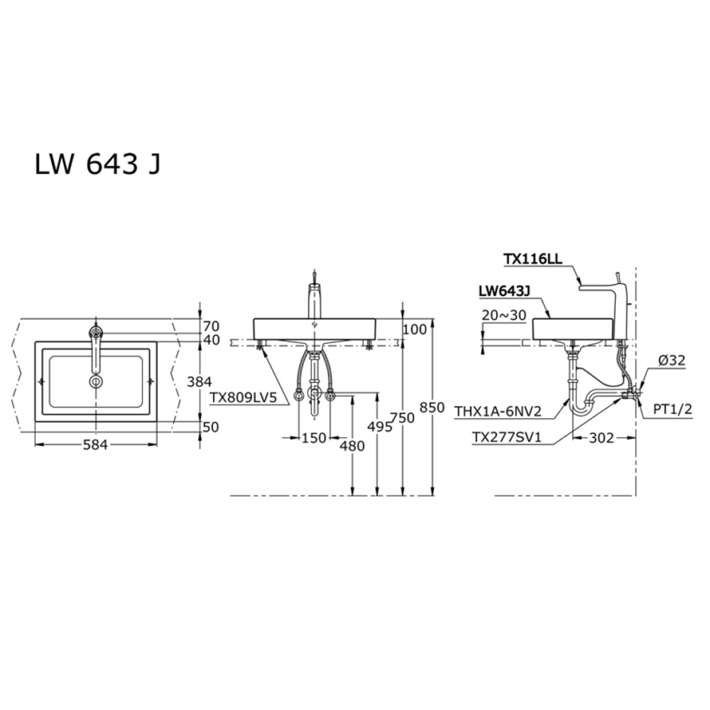 Mô tả sản phẩm Chậu lavabo đặt bàn TOTO LW643JW/F