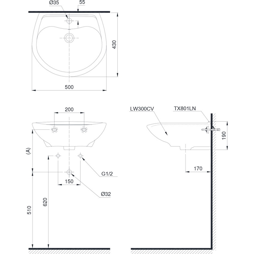 Mô tả sản phẩm Chậu lavabo treo tường TOTO LT300C