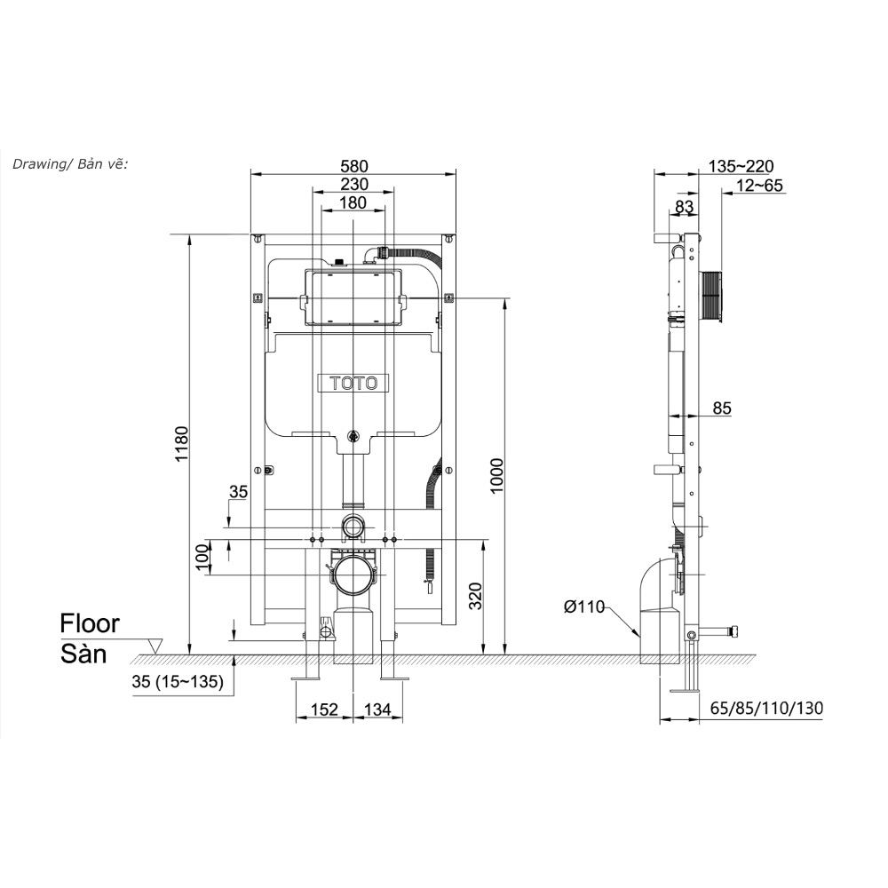 • Có khả năng kết hợp với các bồn cầu treo tường TOTO CW522EA, CW542HME3UNW1