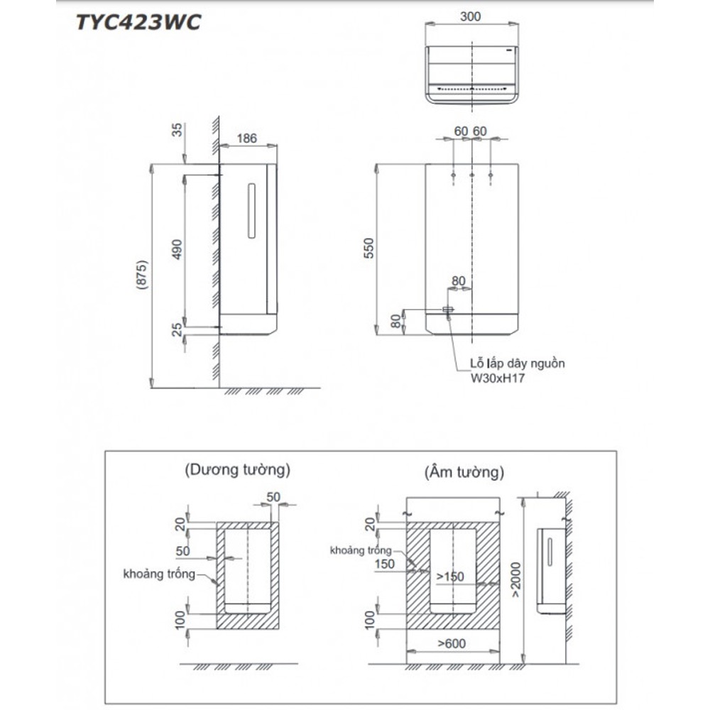 Mô tả sản phẩm Máy sấy tay hai mặt tốc độ cao TOTO TYC423WC