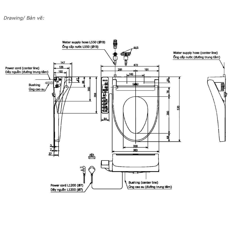 • Sấy khô, khử mùi, sưởi ấm nắp ngồi