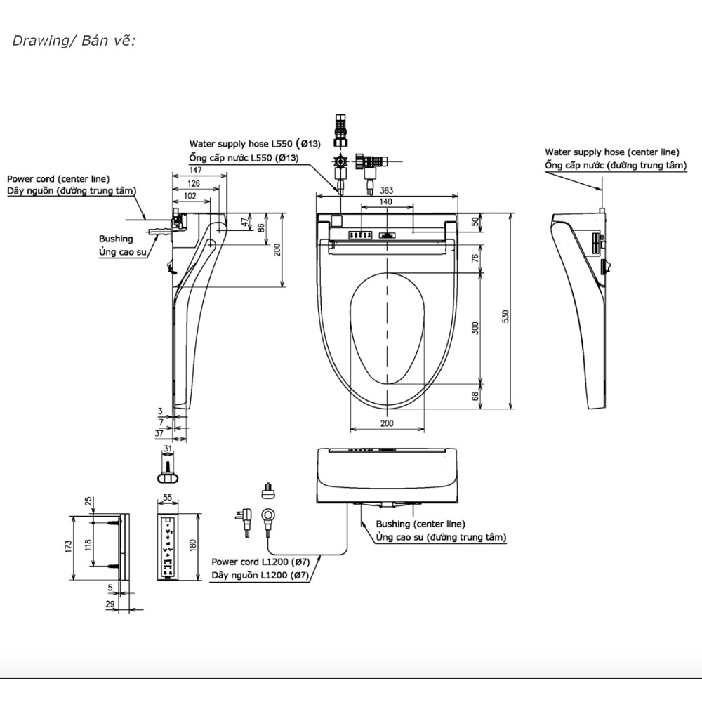 • Sấy khô, khử mùi, sưởi ấm nắp ngồi