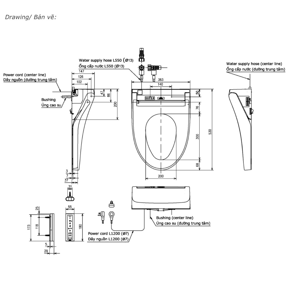 • Điều chỉnh nhiệt độ sấy, nước và bệ ngồi.