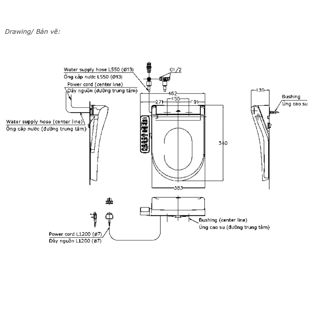 • Sấy khô, khử mùi, sưởi ấm nắp ngồi