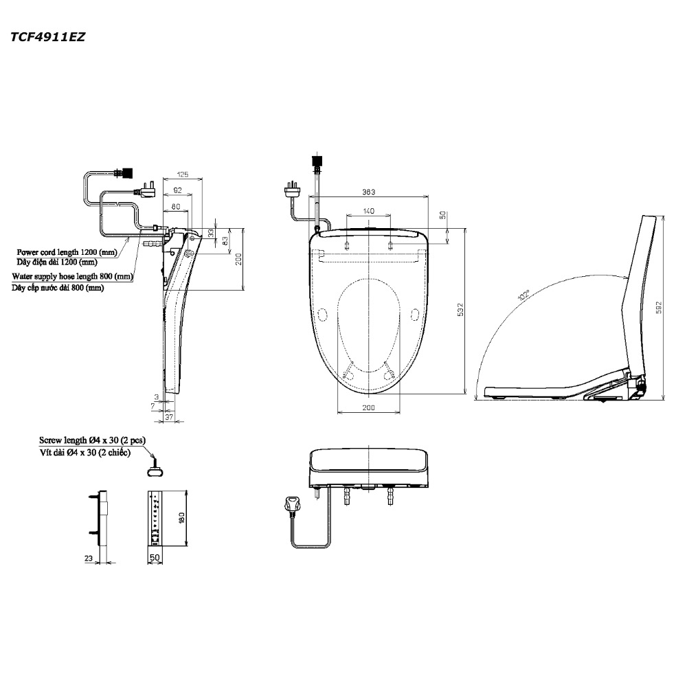 Mô tả sản phẩm Nắp rửa điện tử WASHLET TOTO TCF4911EZ