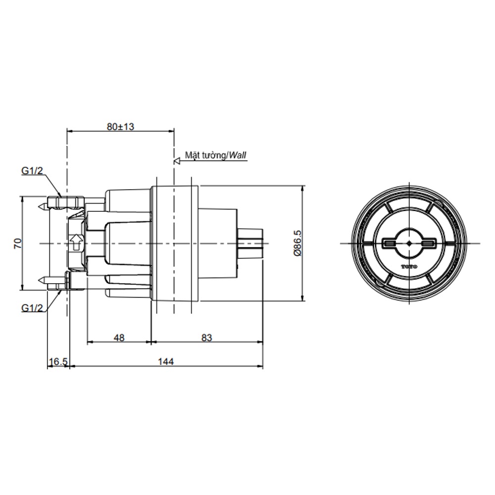 Phụ kiện âm tường cho van chuyển hướng 2 đường nước TOTO TBN01102B