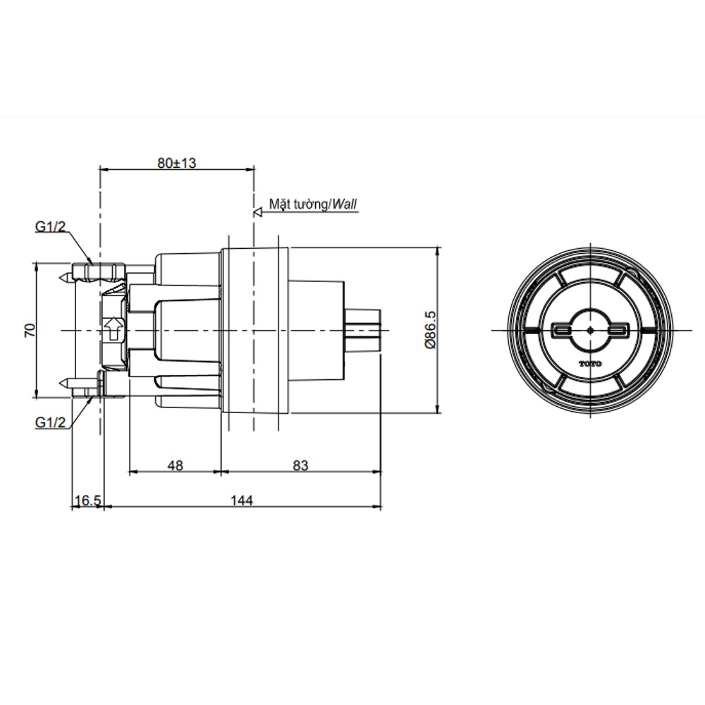 Phụ kiện âm tường cho van chuyển hướng 3 đường nước TOTO TBN01103B