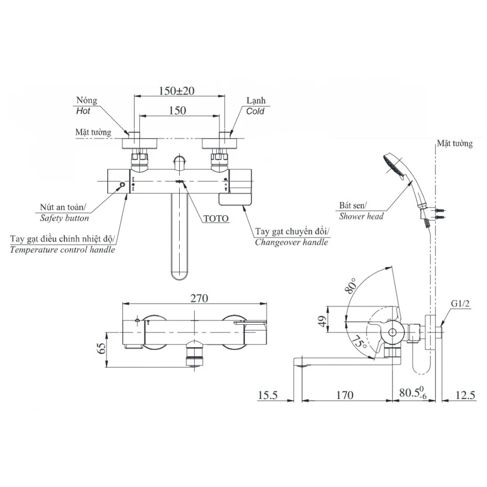 Sen tắm nhiệt độ Nhật Bản TOTO TBV03427V TBW01010A