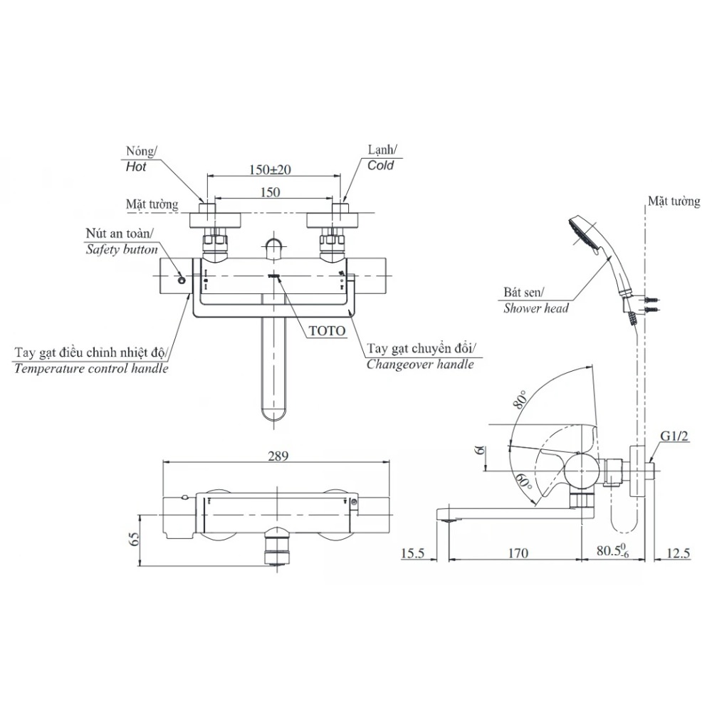 Sen tắm nhiệt độ Nhật Bản TOTO TBV03429V TBW02017A