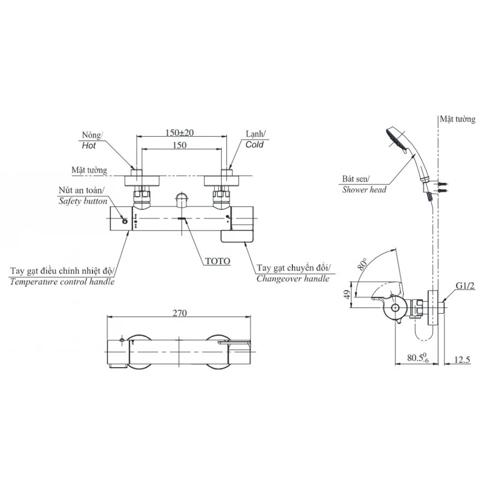 Sen tắm nhiệt độ Nhật Bản TOTO TBV03431V TBW03002B