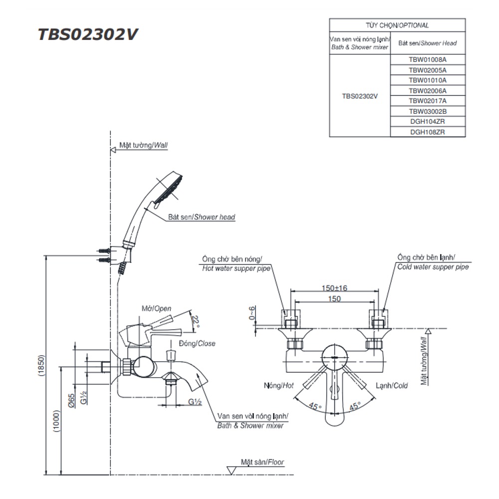 Sen tắm nóng lạnh TOTO TBS02302V TBW01008A