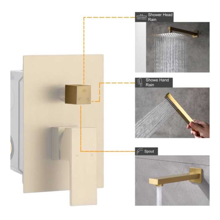• Sen tắm âm tường Cornat LULAR 04302IT màu mạ vàng  với chất liệu Niken thép không rỉ giúp gia tăng tuổi thọ của sản phẩm, kết hợp theo đó là thiết kế hiện đại mang lại một không gian tắm trang nhã, quý phái và vô cùng sang trọng