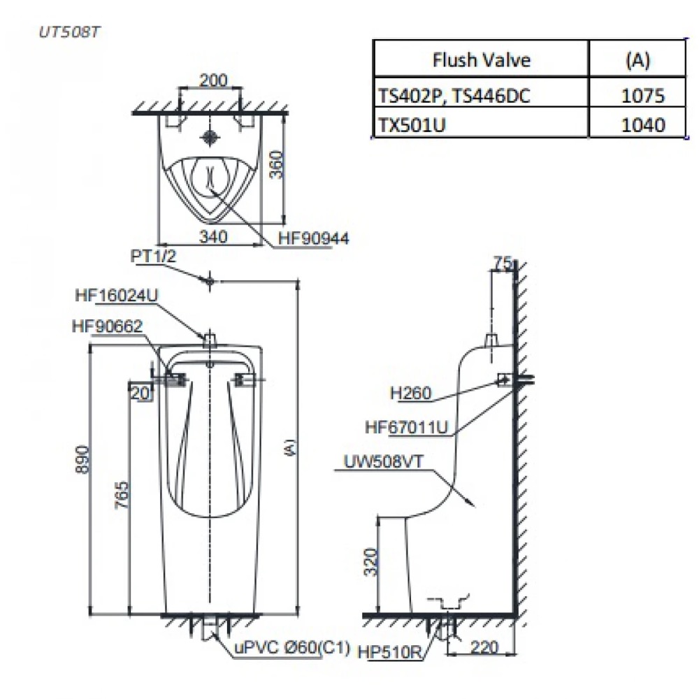 Mô tả sản phẩm Tiểu nam đặt sàn TOTO UT508T