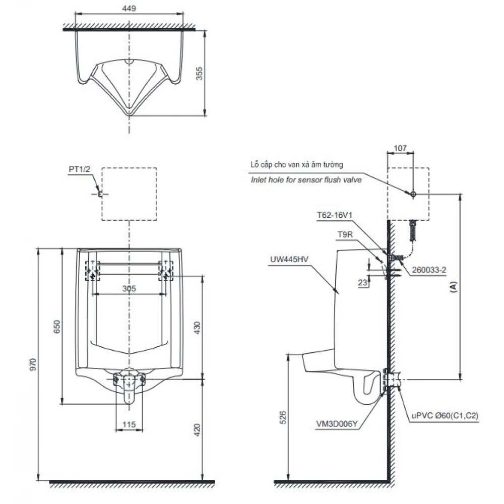 Mô tả sản phẩm Tiểu nam treo tường TOTO UT445H