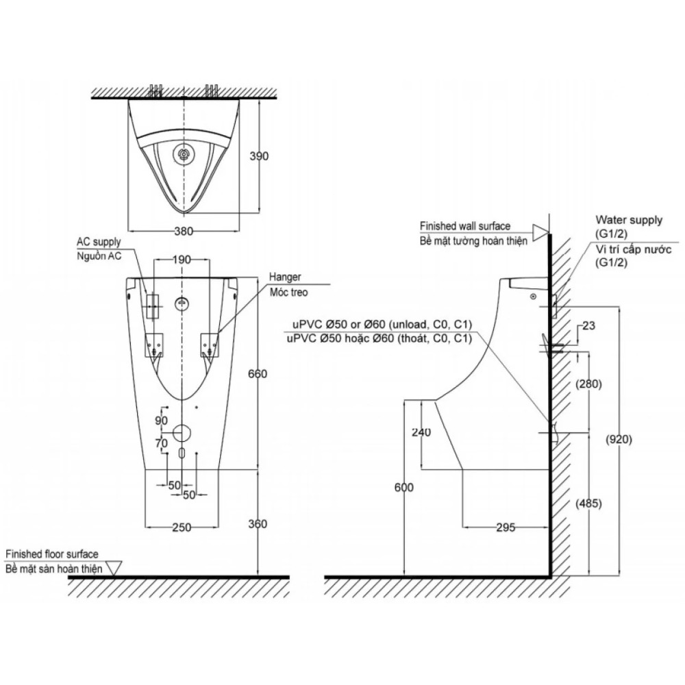 • Thiết kế treo tường dễ dàng vệ sinh