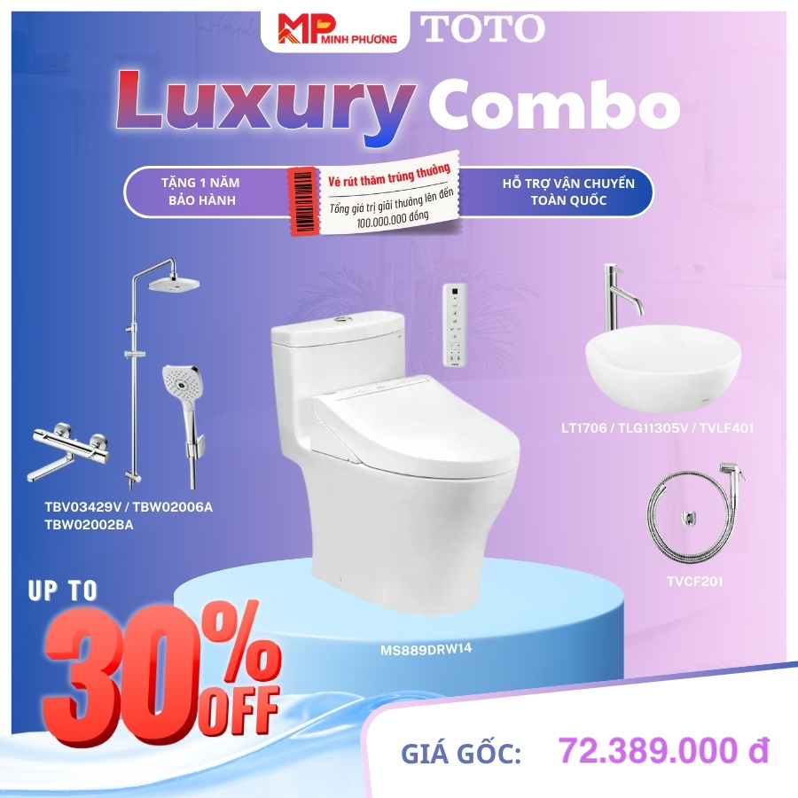 Luxury Combo, bộ thiết bị vệ sinh cao cấp từ TOTO mang đến sự tiện nghi và đẳng cấp cho không gian phòng tắm của bạn. Đừng bỏ lỡ cơ hội sở hữu Luxury Combo để nâng tầm không gian sống của bạn. Ghé thăm Minh Phương Showroom để trải nghiệm sản phẩm và nhận những ưu đãi hấp dẫn.