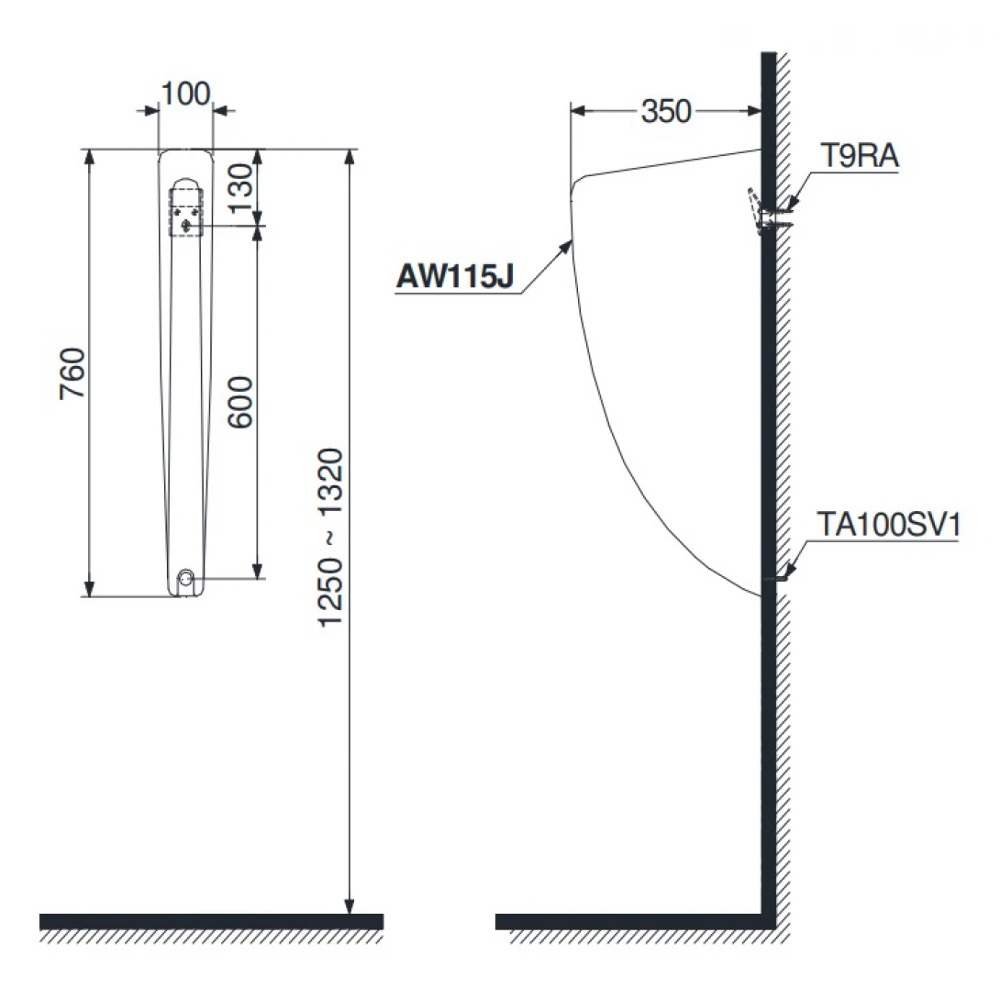 Mô tả sản phẩm Vách ngăn tiểu nam TOTO AW115J