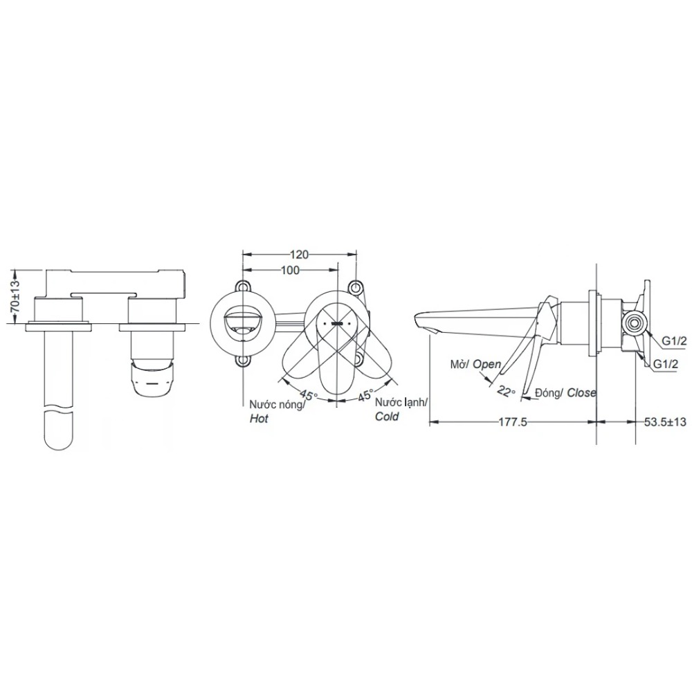 Mô tả sản phẩm Vòi chậu gắn tường 2 lỗ TOTO TLS04308B