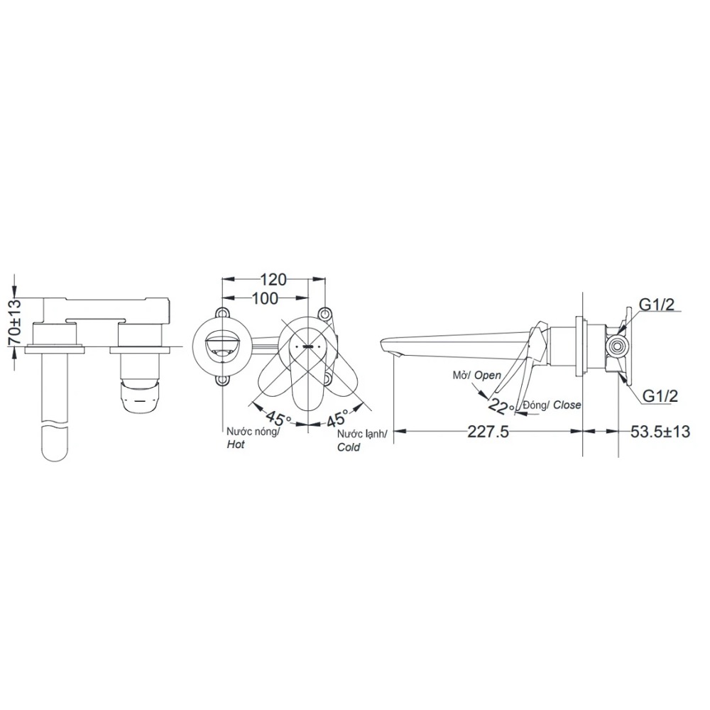 Mô tả sản phẩm Vòi chậu gắn tường 2 lỗ TOTO TLS04309B