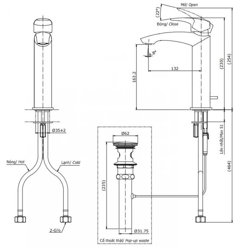 Bao gồm bộ xả, không gồm ống thải chữ P