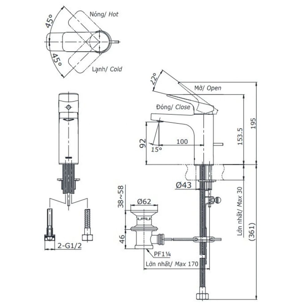 • Van đĩa bằng sứ chống bám cặn bẩn giúp khóa nước hoàn toàn
