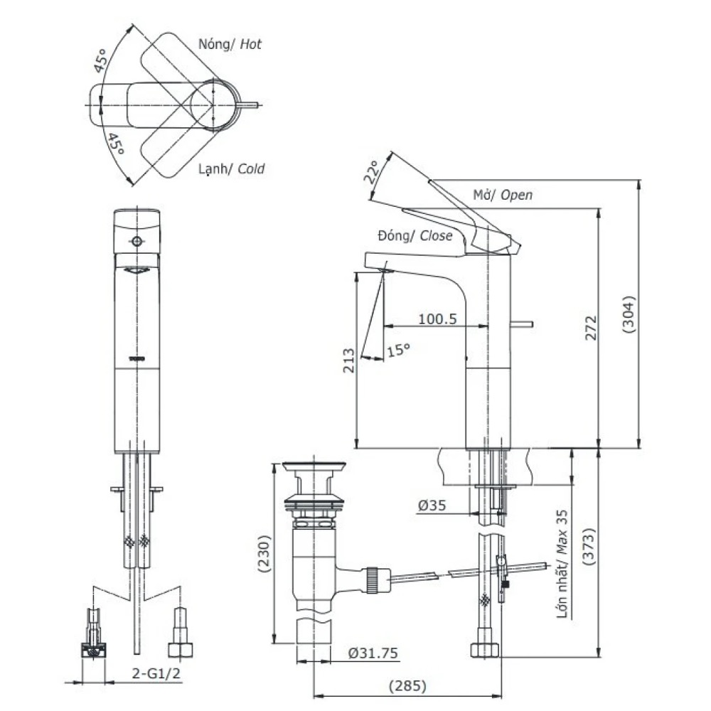 Bao gồm bộ xả, không gồm ống thải chữ P
