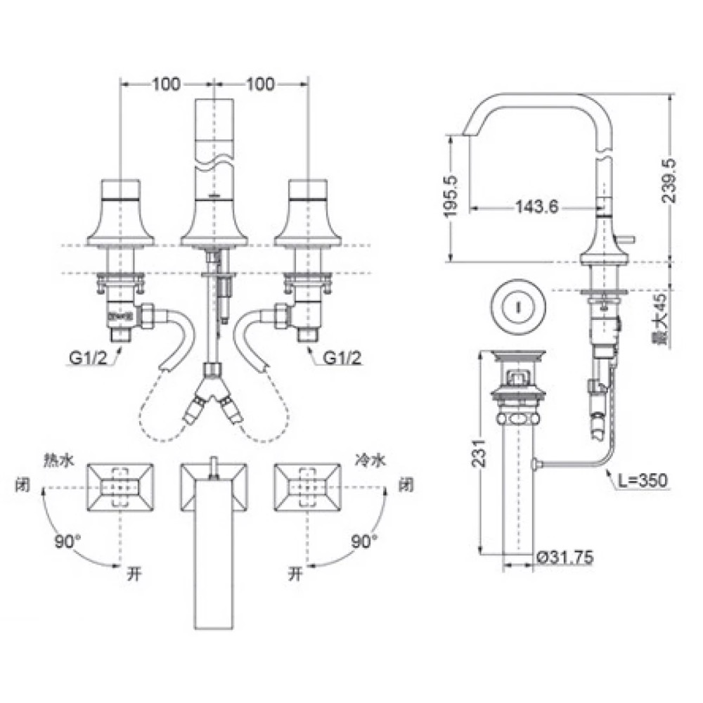 Mô tả sản phẩm Vòi chậu tay vặn 3 lỗ TOTO TLG08201B