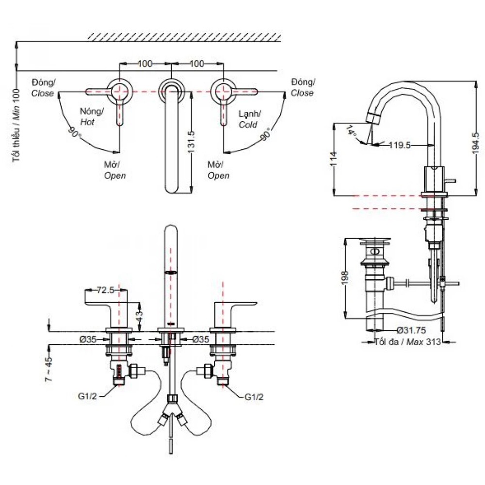 Mô tả sản phẩm Vòi chậu tay vặn 3 lỗ TOTO TLS01201BA